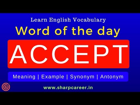 Synonym For Accept - Learn word of the day 'Accept'. Antonym & synonym with Hindi meaning & sentence. To speak english fluently subscribe sharpcareer @ https://goo.gl/7aU8AU.
